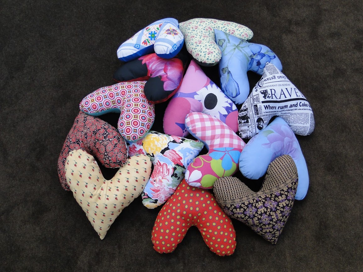 Om deze prachtige gekleurde Heart Pillows te maken die wij als cadeautje uitdelen in de ziekenhuizen, moeten wij stoffen en vulling aanschaffen.